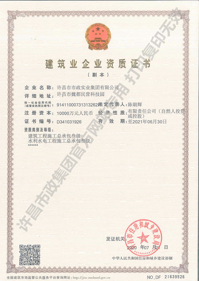 許昌市政 首頁 > 許昌市政 > 企業(yè)資質(zhì)